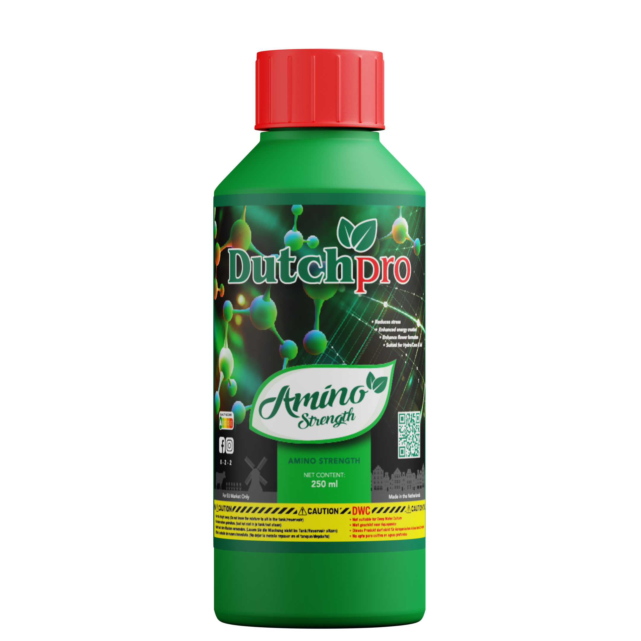 Dutchpro Amino Strength ist ein 100% ORGANISCHES Aminosäureprodukt, das sorgfältig formuliert wurde, um ein kräftiges Pflanzenwachstum zu unterstützen, Stress zu reduzieren und die Blütenbildung zu fördern. Unsere aus natürlichen Zutaten gewonnene Formel liefert wichtige Nährstoffe für stärkere, gesündere Pflanzen und eine verbesserte Blüte. Mit Dutchpro Amino Strength erhalten Ihre Pflanzen die Nährstoffe, die sie benötigen, um unter allen Bedingungen optimal zu gedeihen.