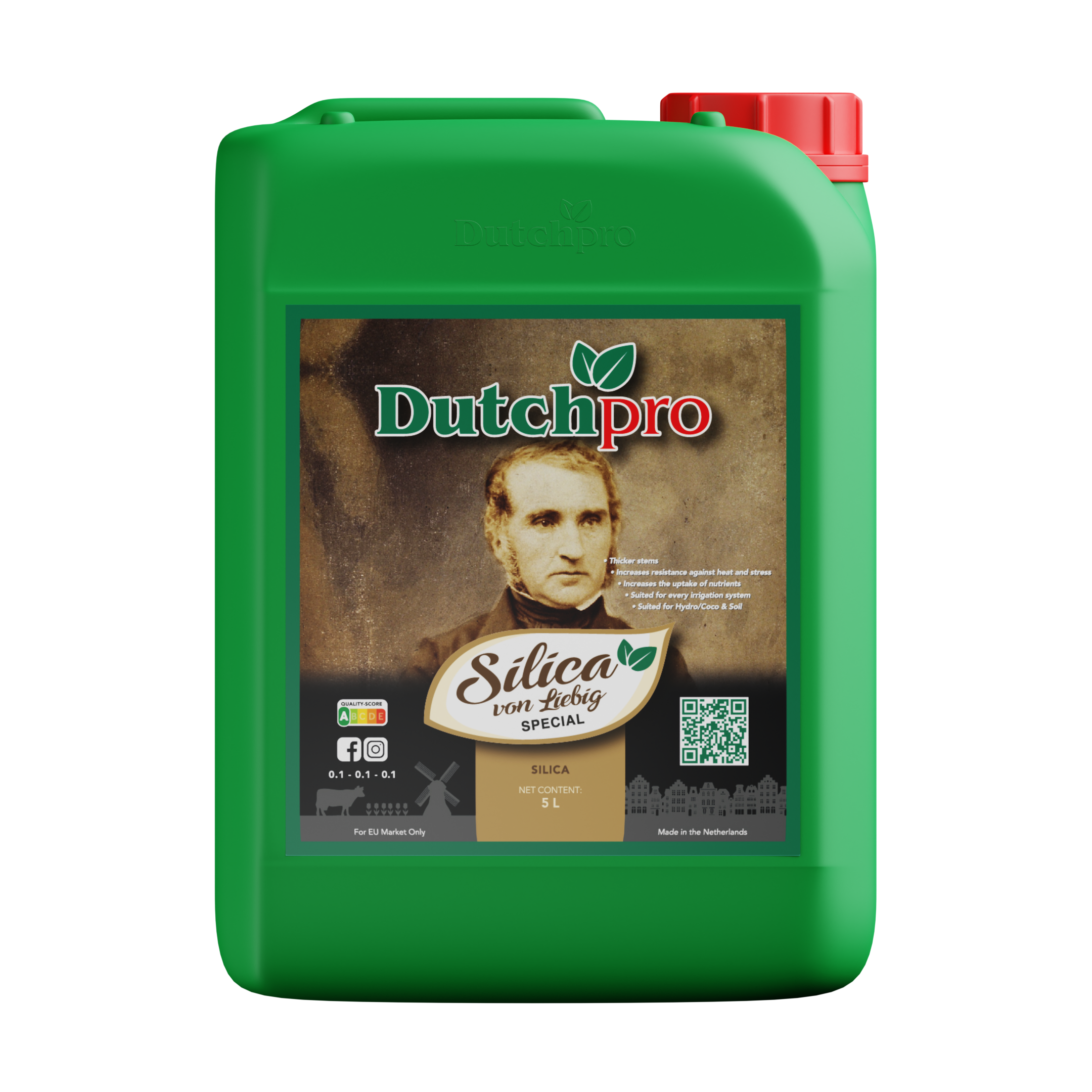 Dutchpro Silica – Von Liebig’s Special ist ein Siliziumdioxid-Produkt, das verwendet wird, um den Ertrag zu steigern und Ihre Pflanze widerstandsfähiger gegen Stress zu machen. Der Name „Von Liebig“ würdigt Justus von Liebig (1803–1873), einen bedeutenden deutschen Chemiker, der für seine Pionierarbeit in der Agrarchemie gefeiert wird. Berühmt für seine Forschungen über die Rolle von Mineralsalzen im Pflanzenwachstum, revolutionierte von Liebig die landwirtschaftlichen Praktiken weltweit.
