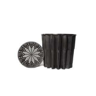 Hergestellt aus Polyethylen (PE) kann er eine runde oder quadratische Form aufweisen, aber im Gegensatz zu den traditionellen Töpfen sind seine Wände so konzipiert, dass sie die Spiralisierung des Wurzelsystems verhindern und jede einzelne Wurzel in Richtung der Öffnungskanäle leiten, wo diese ein äußerst luftiges Umfeld vorfindet und an der Spitze zu dehydrieren beginnt, was ein seitliches Wachstum der anderen Wurzeln auslöst.